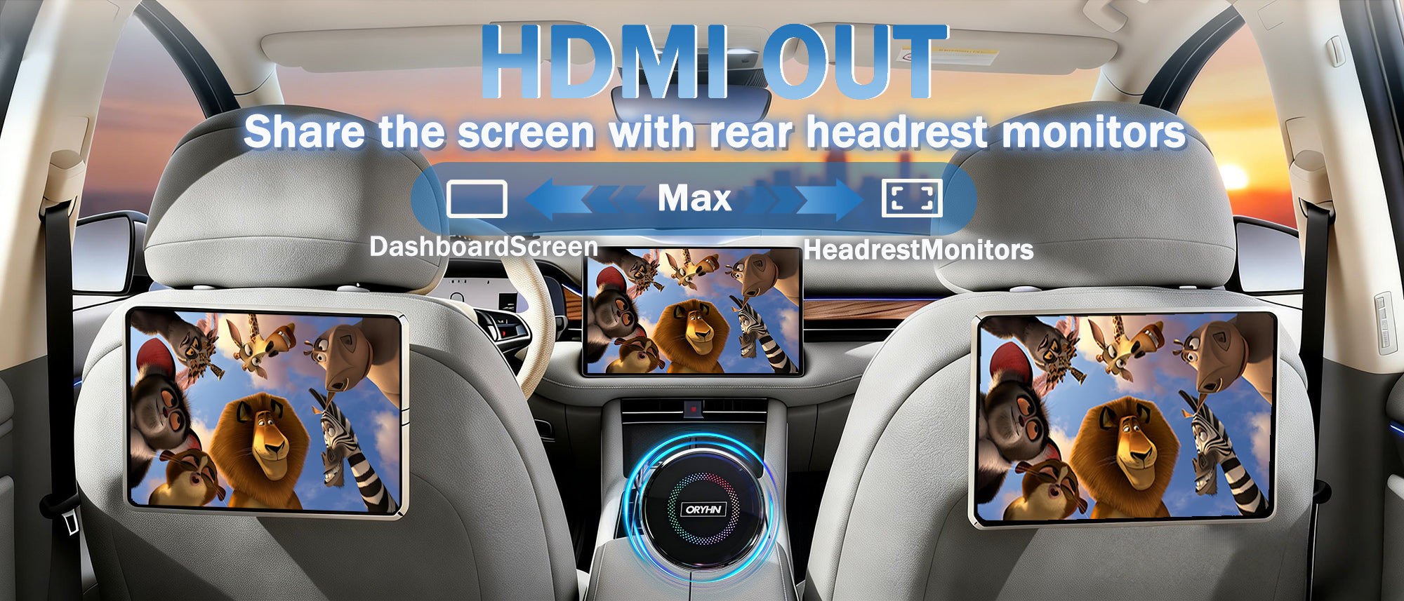 Yes. The Oryhn AI Box Max comes with a built-in HDMI output port, allowing you to mirror or extend the Android interface to an external display such as a roof monitor or headrest screen.