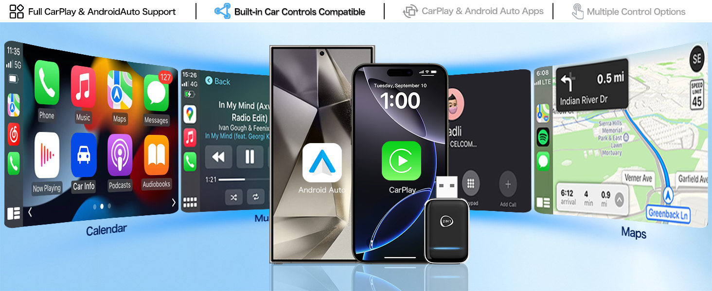 With a sleek and minimalist design, Oryhn blends form and function. Enjoy instant plug-and-play setup, fast auto-connect, online firmware upgrades, and a refined user interface. Works perfectly with all OEM wired CarPlay systems—no phone mount needed. Even if your phone stays in your pocket, it connects effortlessly.
