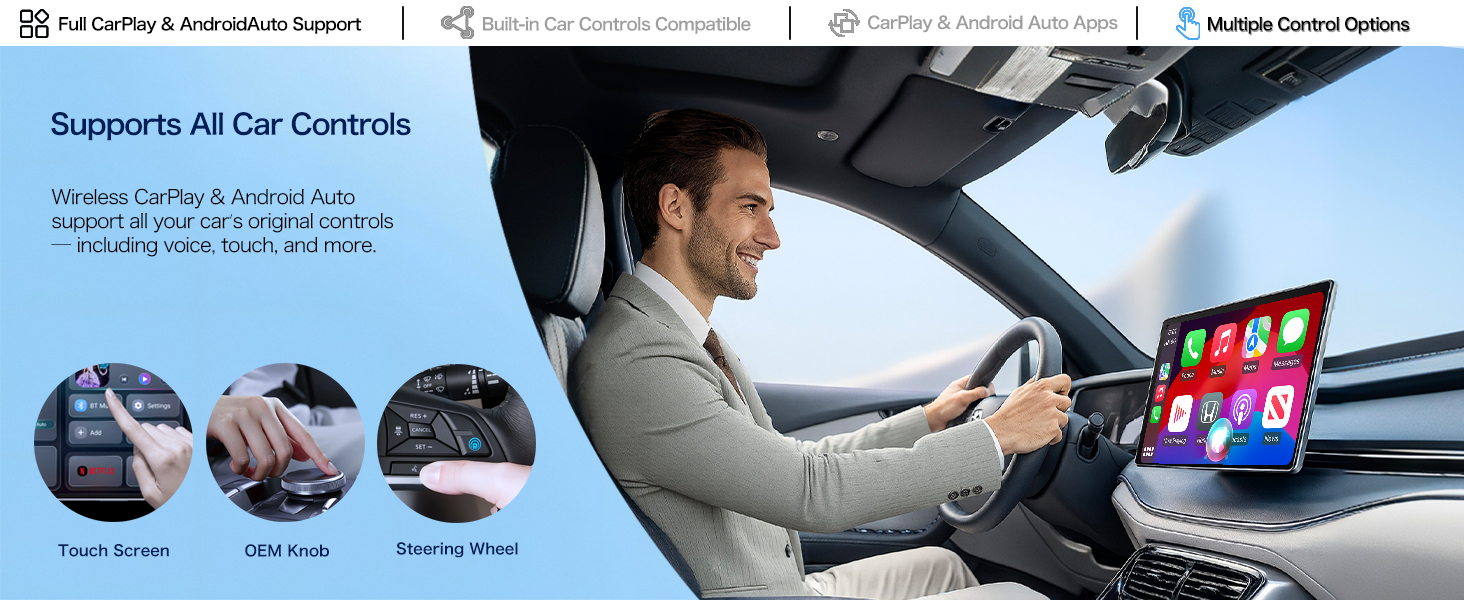 Experience the latest in-car multimedia upgrade with the Oryhn AI Box Lite. This smart adapter combines Wireless CarPlay, Wireless Android Auto, and Android 12 in one device. It fully supports your car’s original controls, including Siri voice commands, steering wheel buttons, touchscreen, and knob controls. Enjoy hands-free convenience and reduce distractions for a safer drive.