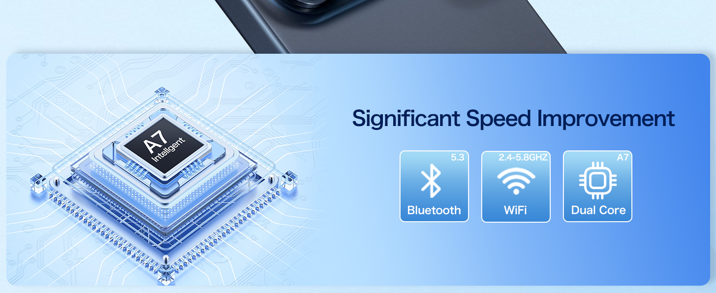 Powered by advanced 7A chip technology, this box features 5.8GHz WiFi, Bluetooth 5.3, and an 8-core processor for lightning-fast performance—up to 10× faster than conventional options. Enjoy smooth usage of Google Maps, media, and messaging apps on your car display. Engineered to withstand oxidation, corrosion, extreme temperatures (-20°C to 70°C), and more—no dropouts on long trips.